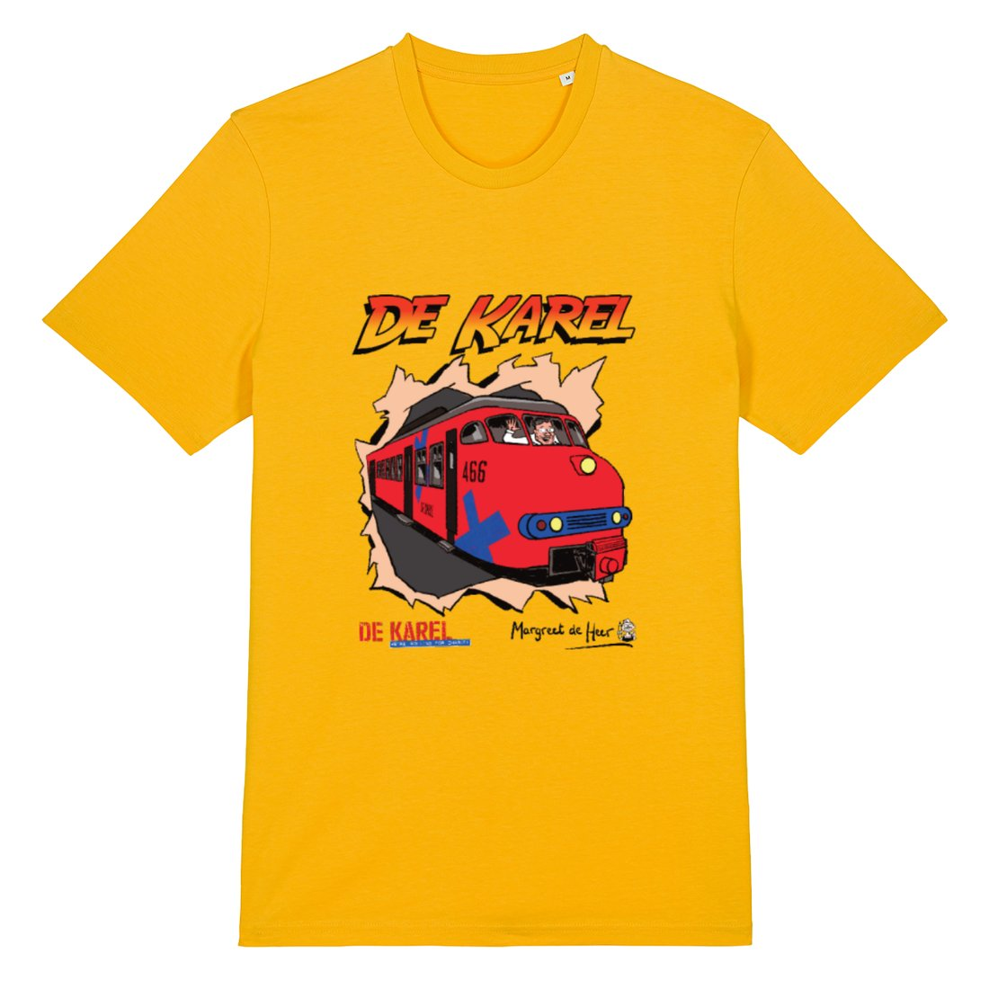De officiële overhandiging in Zaandam wordt verricht door stripmaker Margreet de Heer. Bekend als voormalig Stripmaker des Vaderlands en recent bekroond met een Zilveren Griffel, is ze bovendien groot fan van De Karel. Speciaal voor de gelegenheid ontwierp ze een t-shirt met een knipoog naar Batman, verkrijgbaar in de webshop en in de trein.